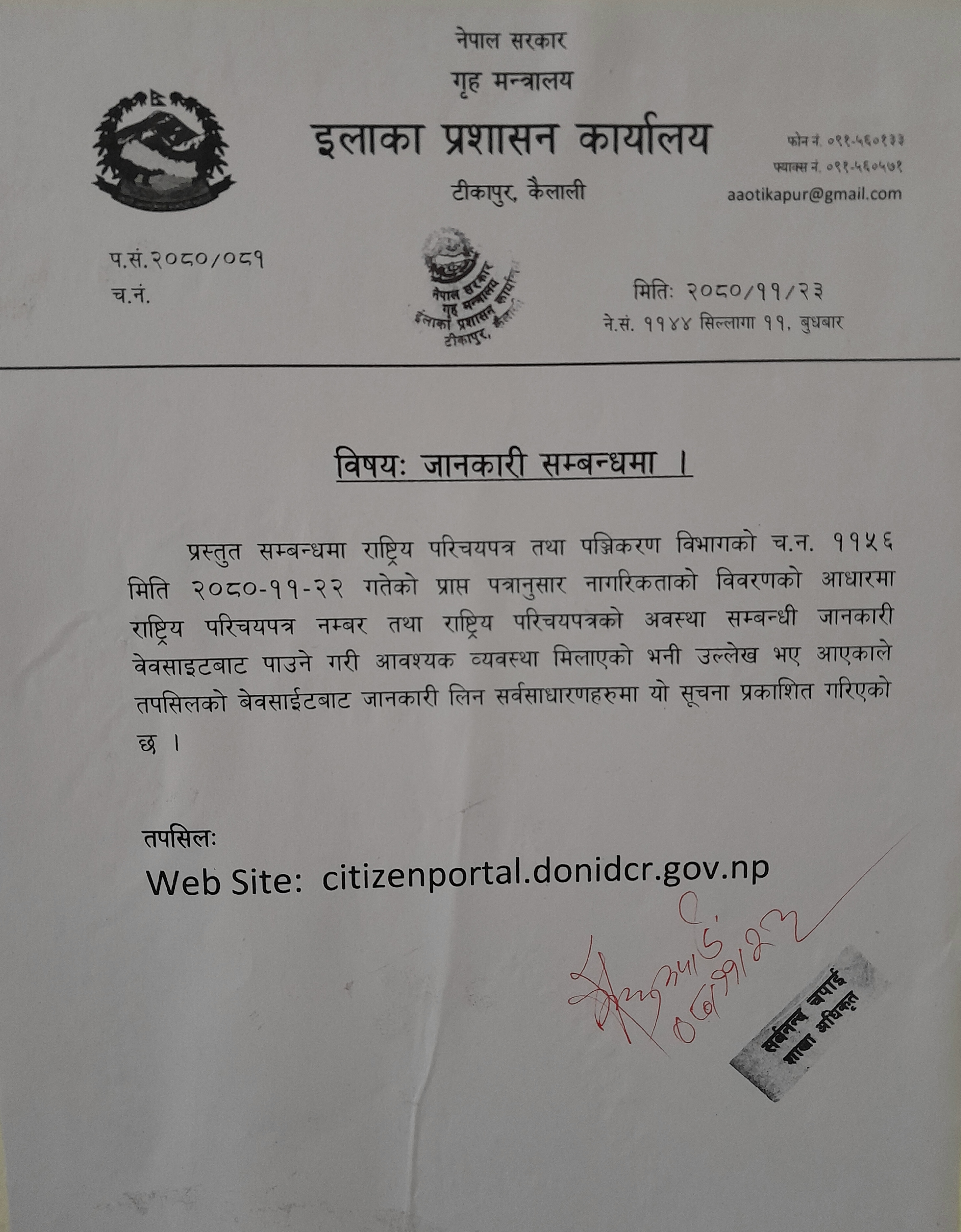 सुचना !!! नागरिकताका लागि अनुसूची फारम प्रष्ट भरि पठाउने सम्बन्धमा ।