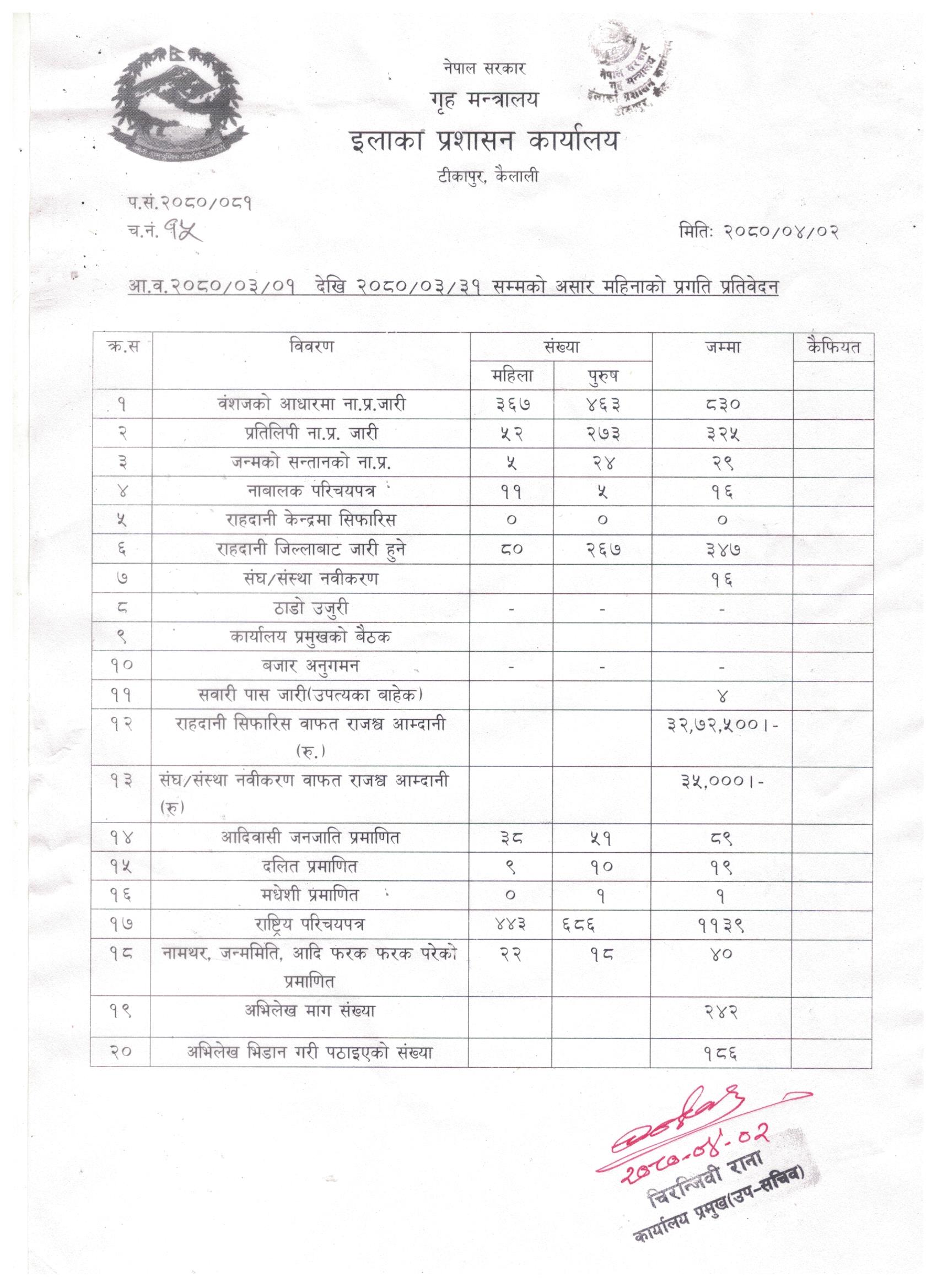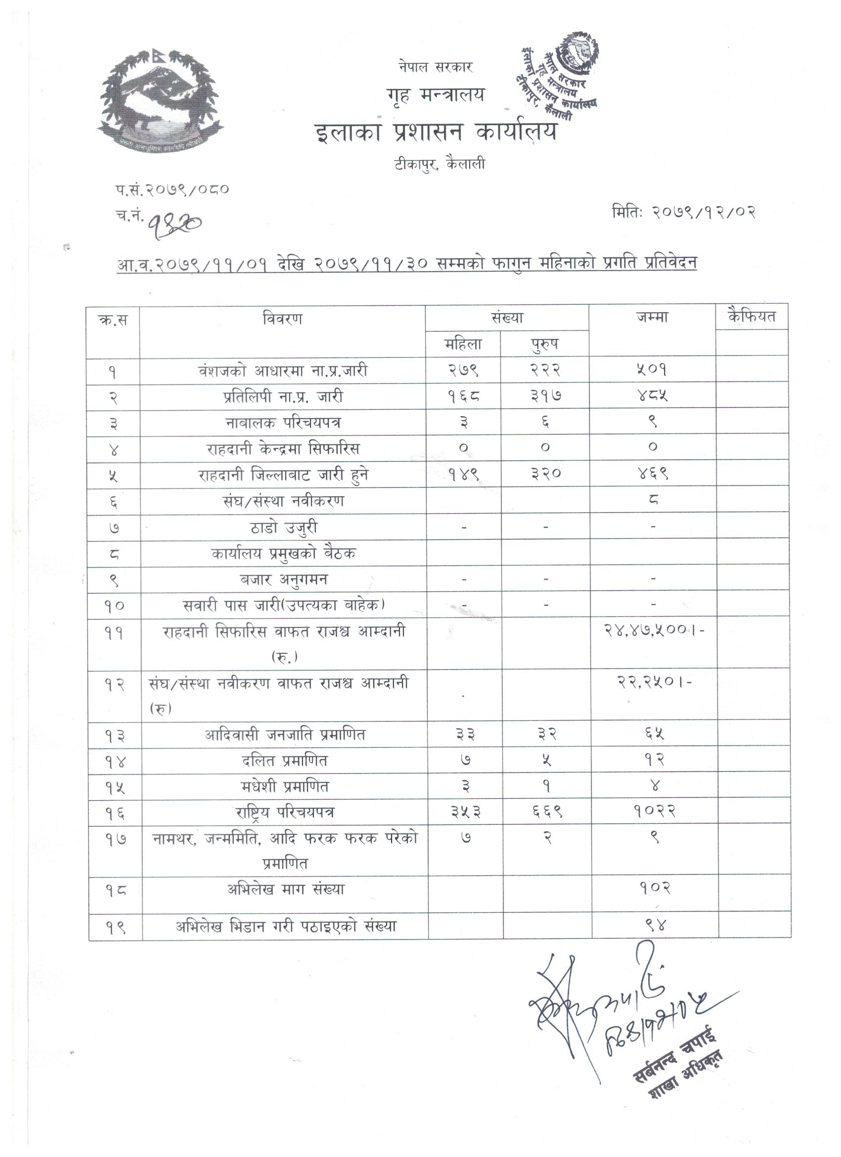 २०८० साल फागुन महिनाको प्रगति प्रतिवेदन