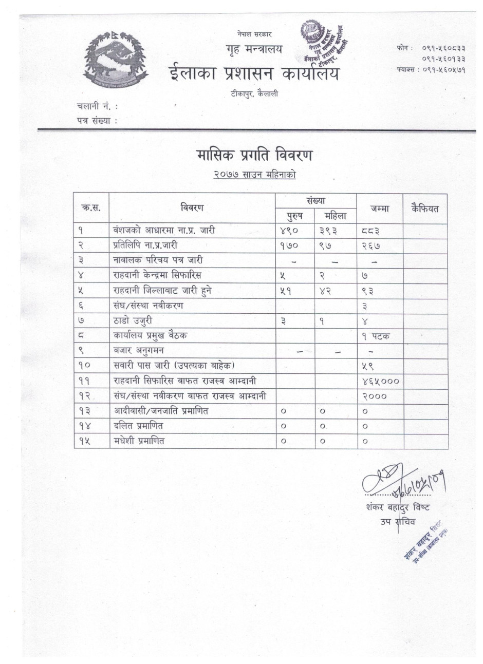 2077 साउन महिनाको प्रगति बिबरण