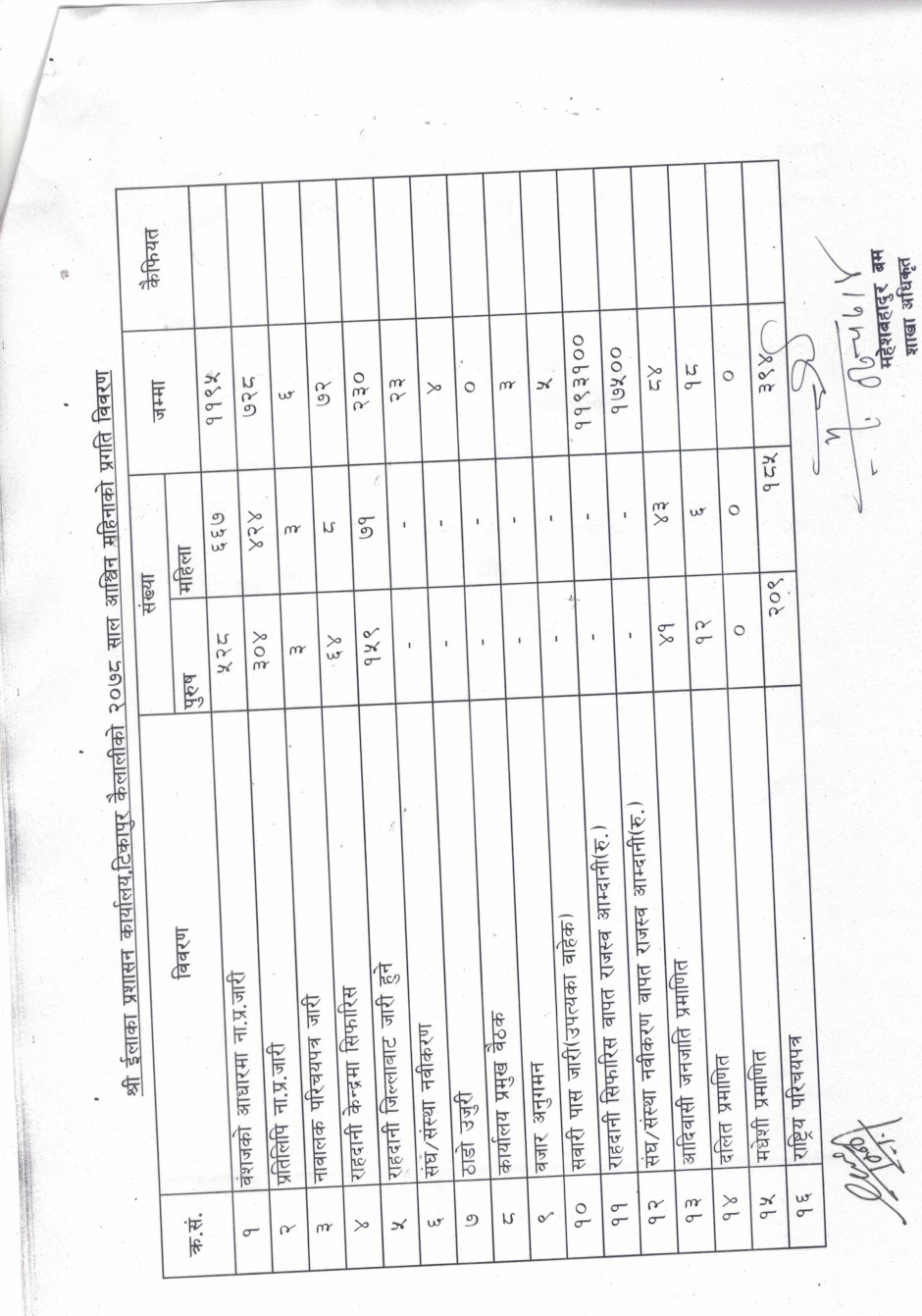 2078 साल आश्विन महिनाको प्रगति विवरण