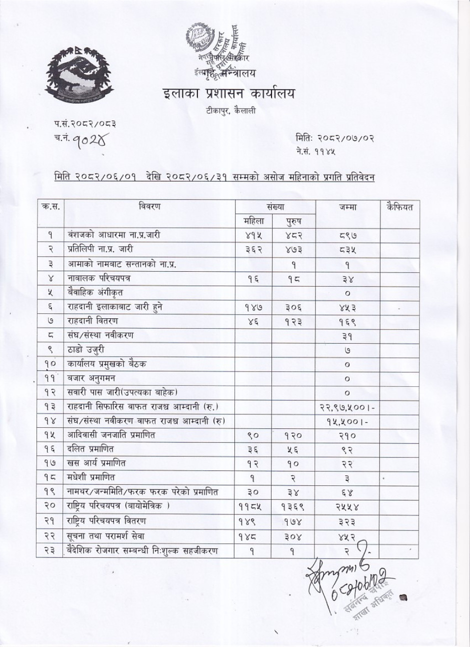 २०८२ साल बैशाख महिनाको मासिक प्रगति विवरण