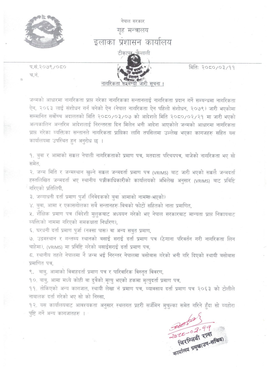 तस्बिर : जन्मको आधारमा नागरिकता प्राप्ति सम्बन्धी सूचना !!