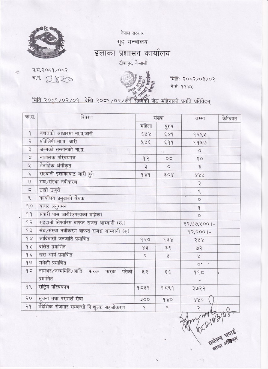 २०८२ साल बैशाख महिनाको मासिक प्रगति विवरण