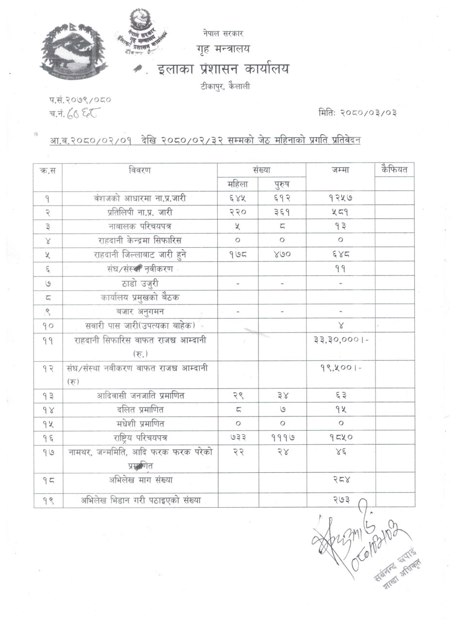 २०८० जेठ महिनाको प्रगति प्रतिवेदन
