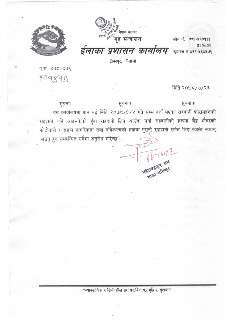 © सर्वाधिकार सुरक्षित ईलाका प्रशासन कार्यालय, टिकापुर, कैलाली
