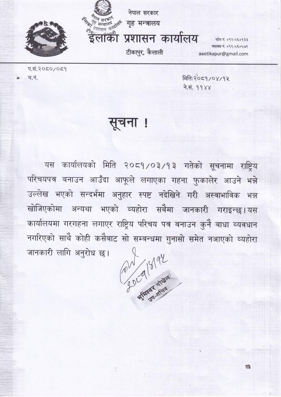 ईलाका प्रशासन कार्यालय, टिकापुर, कैलाली