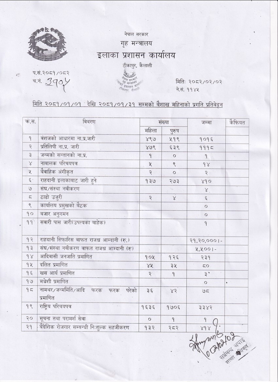 २०८२ साल बैशाख महिनाको मासिक प्रगति विवरण