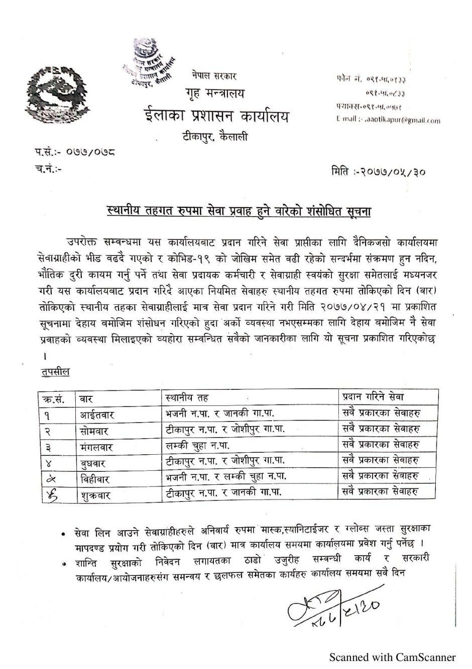 सेवा प्रवाह सम्वन्धी शंसोधित सूचना